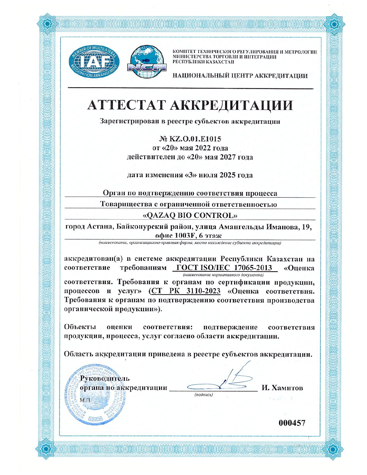 QAZAQ BIO CONTROL — аккредитованная сертификационная компания, целью которой является подтверждение органического статуса продукции, контроль за соблюдением качества и безопасности этой продукции, согласно требованиям и стандартам на её производство.